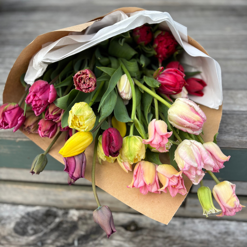 The flowers in the photos are illustrative only. We will pick what’s best and fresh in the garden and will vary from day-to-day. Â